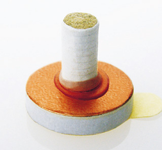 シールをベースからはがして貼るだけ。通気孔が小さく、ピンポイントでの施灸が可能です。